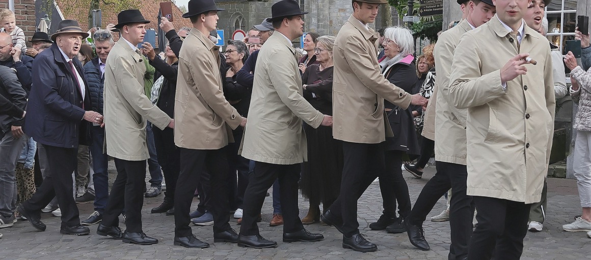 Geleidelijk sluit de hele gemeenschap – jong en oud – zich aan, waardoor een lange, slingerende keten van mensen ontstaat. Al zingend trekken ze door de straatjes en steegjes van Ootmarsum, langs stiepels en karakteristieke gebouwen. De tocht eindigt op de Markt, waar beide paasliederen nog één keer worden gezongen.