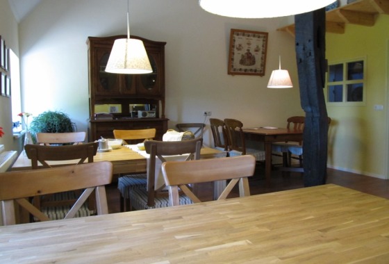 In de “deel”, de oude stal met rieten dak, zijn vier gastenkamers gebouwd, met een eigen ingang. In onze ontbijtruimte kunt u lekker een kopje koffie of thee drinken en een mooie fiets- of wandelroute uitzoeken uit onze toeristische kaarten en boekjes. ’s Avonds lekker slapen op een plek waar het ’s nachts nog echt donker wordt. ’s Morgens lekker ontbijten met zelfgemaakte en streek-producten.