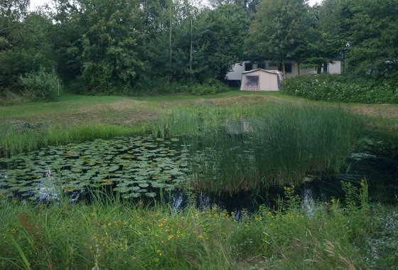 De camping is geheel omzoomd door een houtwal, met onderandere fruit-, noten- en tamme kastanje bomen. Het is een oase van rust. Hier word je omgeven door groen, weilanden en boerderijdieren. Alhoewel de vogels en kikkers zich wel laten horen. Want er zijn veel vogels en er is een kikkerpoel met .... ja écht, kikkers.