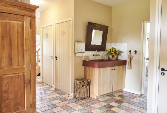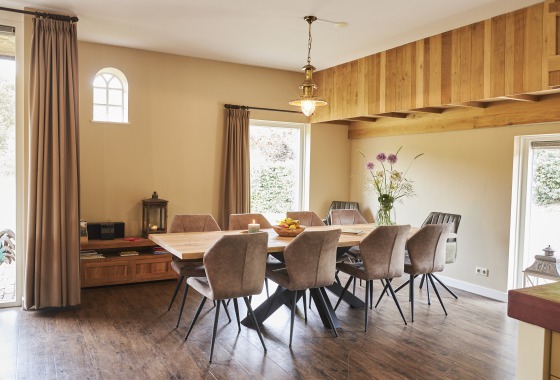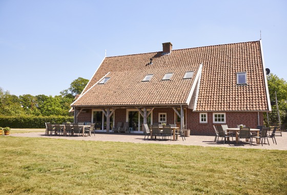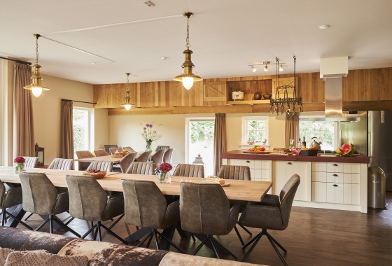 Naast een modern uitgeruste keuken en kamer heeft dit huis 10 tweepersoons-slaapkamers met eigen douche en toilet en 1 vierpersoonskamer. Daarom leent het Landhoes zich uitstekend voor familie- en vriendenweekenden. Een ideaal vakantiehuis voor gezelschappen tussen de 10 en 24 personen die willen genieten van rust, ruimte en het landleven.