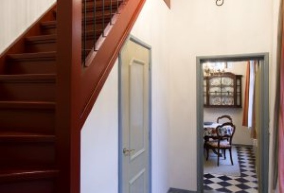 Nu een deel van deze huisjes is omgetoverd tot een comfortabel vakantiehuis, kun je met eigen ogen de karakteristieke sfeer ervaren. Iedere ruimte heeft een uniek karakter: van de sfeervolle eetkamer tot de televisiekamer met groene sofa om lekker in weg te zakken. En van de grote keuken waar koken allesbehalve een straf is tot de slaapkamers en badkamer die je vanaf de begane grond met een trap bereikt. Het eclectische interieur is een mooie mix van oud en nieuw en de historische plavuizen vloeren en balkenplafonds maken het helemaal af. Bewonder de vele details en geniet van deze historische plek met modern comfort.