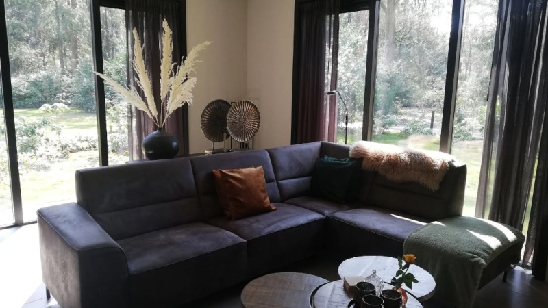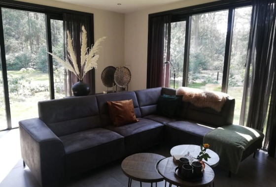 Het huis is volledig gelijkvloers. In de ruime en luxe keuken zit onder andere een vaatwasser, inductiekookplaat en een ruime koelkast. In de kamer staat een grote hoekbank, waar u na het vele wandelen en fietsen heerlijk op kan bijkomen, in de avond, of gewoon overdag heerlijk kan ontspannen en genieten van de rust en ruimte. Er zijn twee slaapkamers welke voorzien zijn van boxspring bedden en ruime kledingkasten met zowel hang- als leg kastruimte. In de badkamer bevindt zich een royale douche met toilet. Tevens is er nog een extra toilet in de hal. In de bijkeuken/garderobe staat tevens een klein diepvrieskastje.