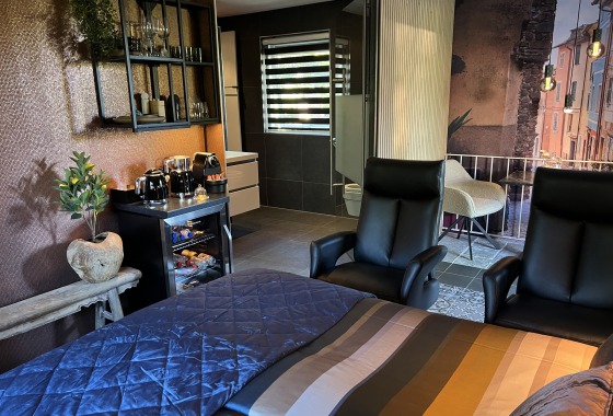 Ervaar ultieme weelde en comfort in de Luxe Mediterraanse Suite, gelegen aan de schilderachtige bosrand van Rijssen-Holten.