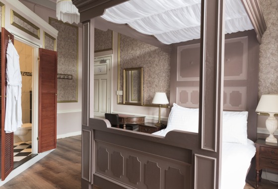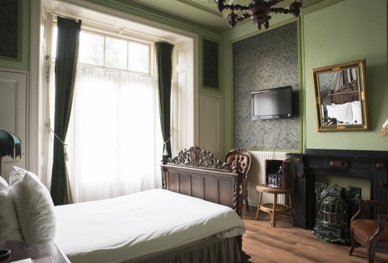 Een bijzonder hotel vanwege de architectuur en het uitzonderlijke interieur – met de prachtige hoge plafonds, erkers en originele ornamenten.