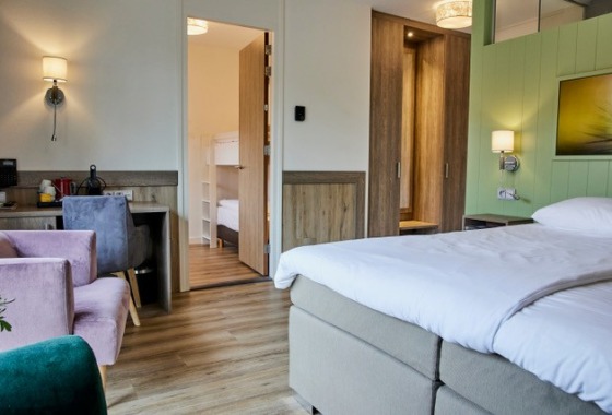 Hotel Erve Hulsbeek is ruim opgezet met grote nieuwe hotelkamers, familiekamers, juniorsuites en luxe sauna suite. Ons viersterrenhotel is gelegen midden in de bossen op recreatiepark Het Hulsbeek met veel ruimte en mogelijkheden voor recreëren, wandelen of fietsen. Erg geschikt voor een ontspannen weekendje weg of een korte vakantie. Voor gezinnen hebben we speciale familiekamers met extra kinderkamer geschikt voor 2 volwassenen met 2 of 3 kinderen. Ook is er een aparte eetkamer met koelkast en tv die exclusief voor een gezelschap gereserveerd kan worden. Alle hotelkamers hebben een koelkastje, LED tv , gratis WIFI, een Nespresso apparaat en waterkoker.