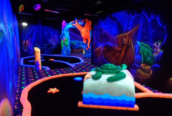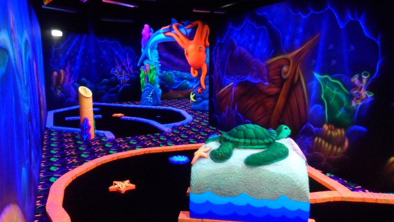 Ontdek de ervaring van glow in the dark midgetgolf. Speel op de spectaculaire 18 holes golfbaan met prachtige decorstukken, het leuke minigolfspel. Alle wanden en vloeren zijn hierbij uitgelicht met blacklights.