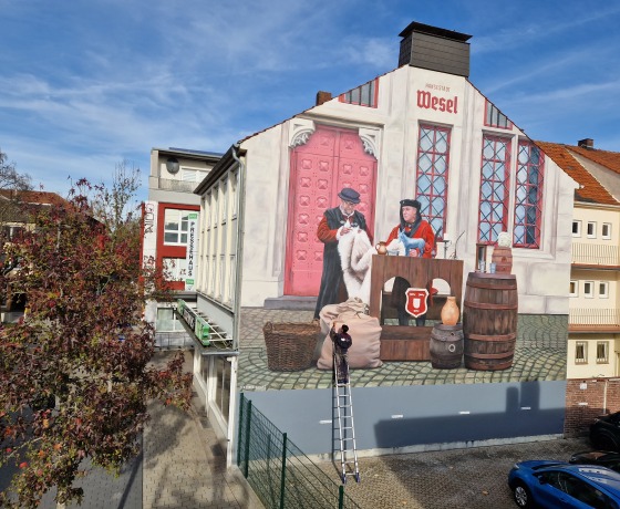 Voor het Hanzejaar in 2023 zijn er in meerdere Hanzesteden krachtpatsers van muurschilderingen gemaakt. In Nederland én Duitsland. Métershoog en passend bij de Hanze: een mix van "toen" en een knipoog naar het nu. De muurschilderingen zijn allemaal een beetje familie van elkaar. De basis is een foto van twee mensen uit de betreffende Hanzestad met kleding uit de Hanzetijd, mét een twist naar het nu. Ontdek zelf bij elke muurschildering welke twist dat is. Deze zijn allemaal gemaakt door ‘De Strakke Hand’. Bekijk ze allemaal op het Instagramaccount van @discoverhansa. Foto's: De Strakke Hand
