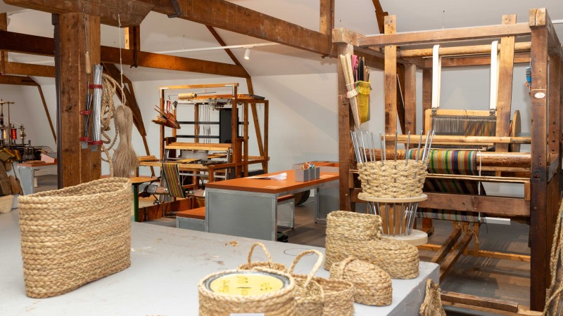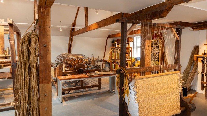 Tapijtmuseum Genemuiden: “Van biezen tot kunstgras”. De geschiedenis van de Genemuider vloerbedekkingsindustrie is in het Tapijtmuseum vastgelegd.
