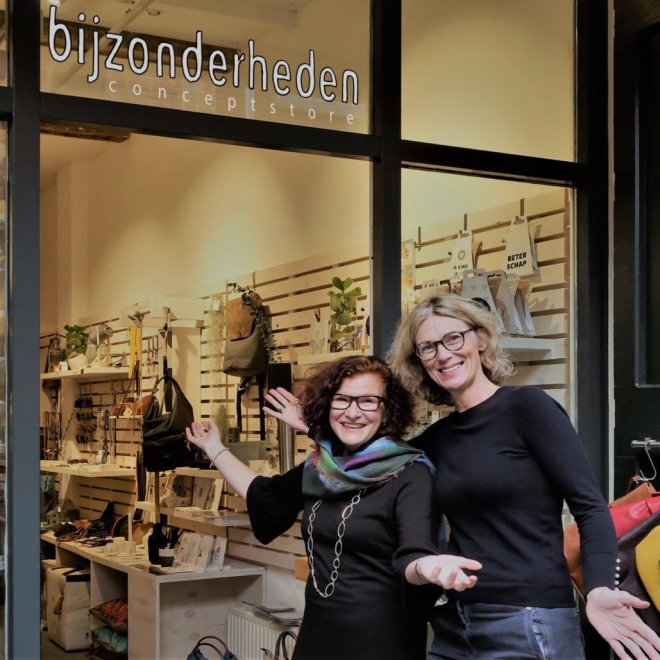 Leonie en Michèle zijn moeder en dochter en runnen samen een prachtige winkel in één van de leukste straatjes van Deventer. Alles draait om duurzaam. Je vindt er slow fashion en perfecte basics om eindeloos te combineren. Probeer de gave sneakers gemaakt van appelschillen, de gerecyclede (zonne)brillen, mooie tassen of verfijnde sieraden.
